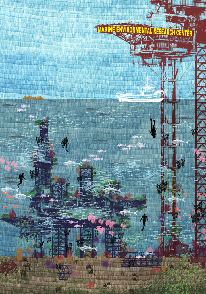 In mare, piattaforme petrolifere riutilizzate diventano hub polifunzionali; sulla costa, città portuali con una nuova autonomia politica. Serenissime 2.0, interconnesse e capaci di gestire l’eterogeneità di un territorio ancora organizzato secondo il centralismo dei nazionalismi ottocenteschi. In queste neo-Repubbliche Marinare, città e porto si fondono in spazi multifunzionali, in una porosità di beni, servizi e idee. La cabina balneare convive con il container industriale, la pensione turistica con la chiesa. Gli spazi residuali, ingombranti presenze della costa adriatica, si trasformano in campi di sperimentazione flessibili, dove le città-porto si attrezzano per affrontare le attuali instabilità climatiche e sociali in questa fase storica di profonda transizione.