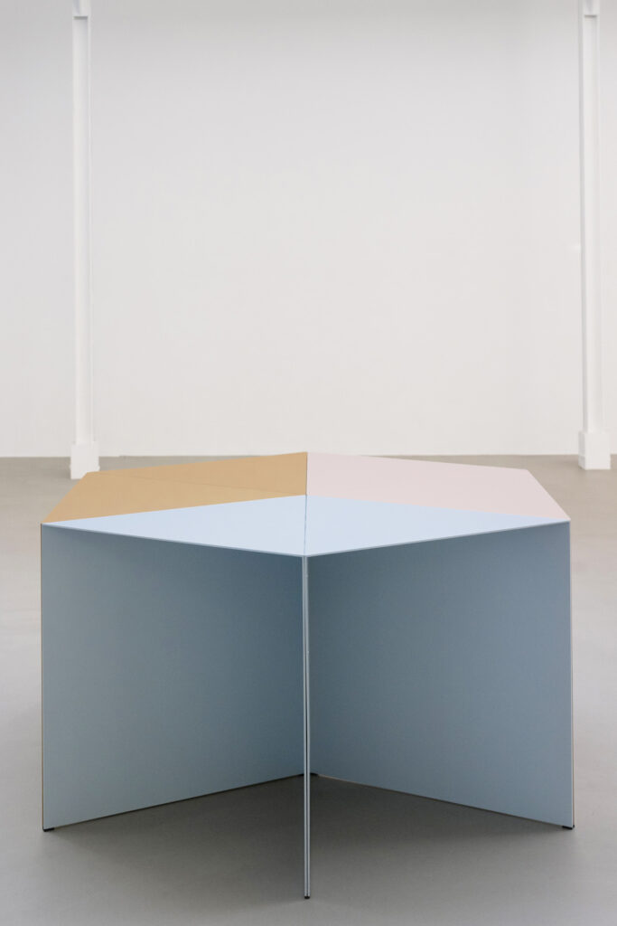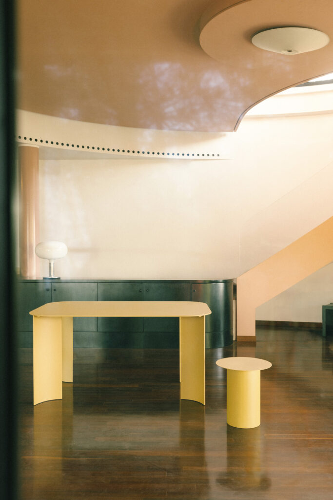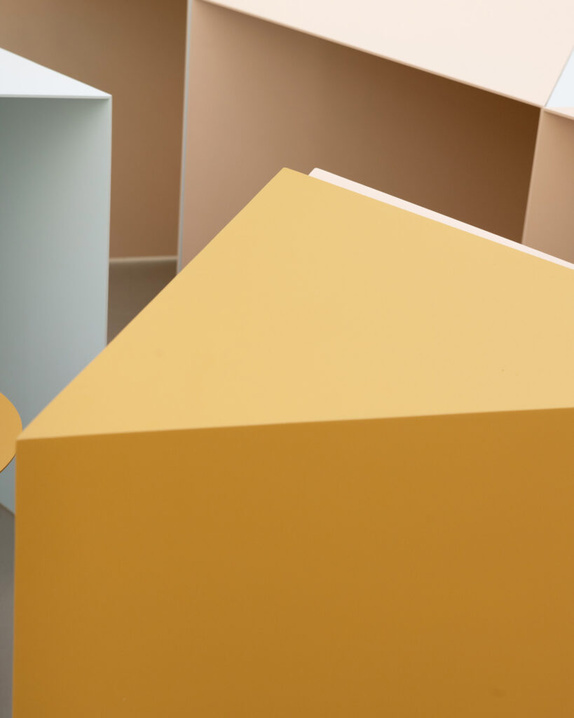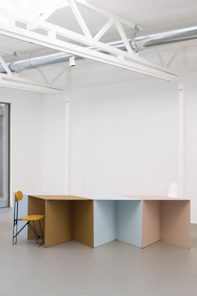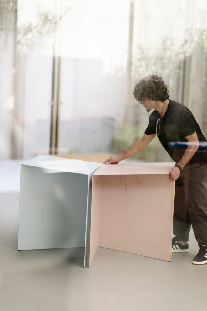 MR La combinazione di complessità-libertà è azzeccata. Dietro l’aspetto giocoso, Triangolo infatti nasconde un’identità ingegneristica. Dopo una lunga fase di sperimentazione e sviluppo, ho sostituito il legno del prototipo originario con sottili lamiere di ferro ripiegato, mantenendo lo spessore originale di due centimetri. Il prodotto era funzionante, ma non rispettava i nostri canoni estetici. Continuando la prototipazione, siamo passati a lamiere compatte di alluminio, riducendo lo spessore a soli quattro millimetri. Il risultato è una soluzione scultorea, leggera e allo stesso tempo stabile e resistente, adatta non solo alla casa, ma anche agli spazi pubblici e al contract, sia indoor che outdoor. L’uso del metallo aggiunge una componente importante di attenzione all’ambiente che abbiamo in tutti i nostri prodotti: li realizziamo sempre a partire da risorse parzialmente riciclate e sono interamente riciclabili al termine del ciclo di vita dell’oggetto (che speriamo sia il più lungo possibile). Le tue architetture spesso sono descritte come opere radicali, capaci di fondere paesaggio e struttura in un gesto tanto semplice quanto enigmatico. Triangolo ha seguito lo stesso approccio radicale delle tue architetture?