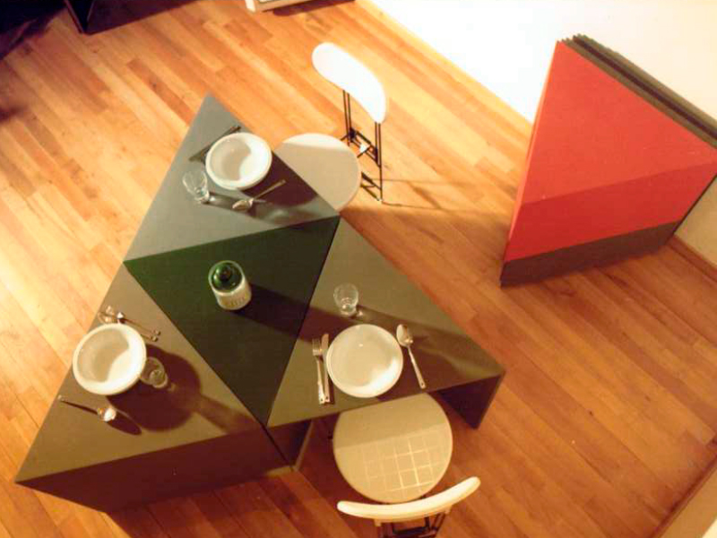 IP Per me tutta l’architettura si esprime nel gesto unico e semplificato al massimo. Design e architettura sono però due temi e due scale completamente diversi. Solo il punto di partenza è lo stesso: la sfida, il problema ben posto da risolvere. Ma un conto è fare architettura e un conto è fare un oggetto. L’una contiene possibili scenografie, l’altro può conformare più scenografie possibili – e più ci riesce e meglio è. L’architetto è il regista di tutto questo, che coordina e stimola spunti di riflessione. Deve opporsi con tutta la sua forza alle specializzazioni – oggi sempre più di moda – e immaginare spazi e oggetti non muti e immobili, ma aperti al cambiamento. Abbiamo dimenticato che l’architettura è la madre di tutte le arti e che l’architetto non disegna solo un oggetto o uno spazio, ma è anche inventore e ingegnere; è ora di rivendicare con orgoglio queste verità! Tu, Marco, come pensi che Triangolo si inserisca nel linguaggio di RIPA?